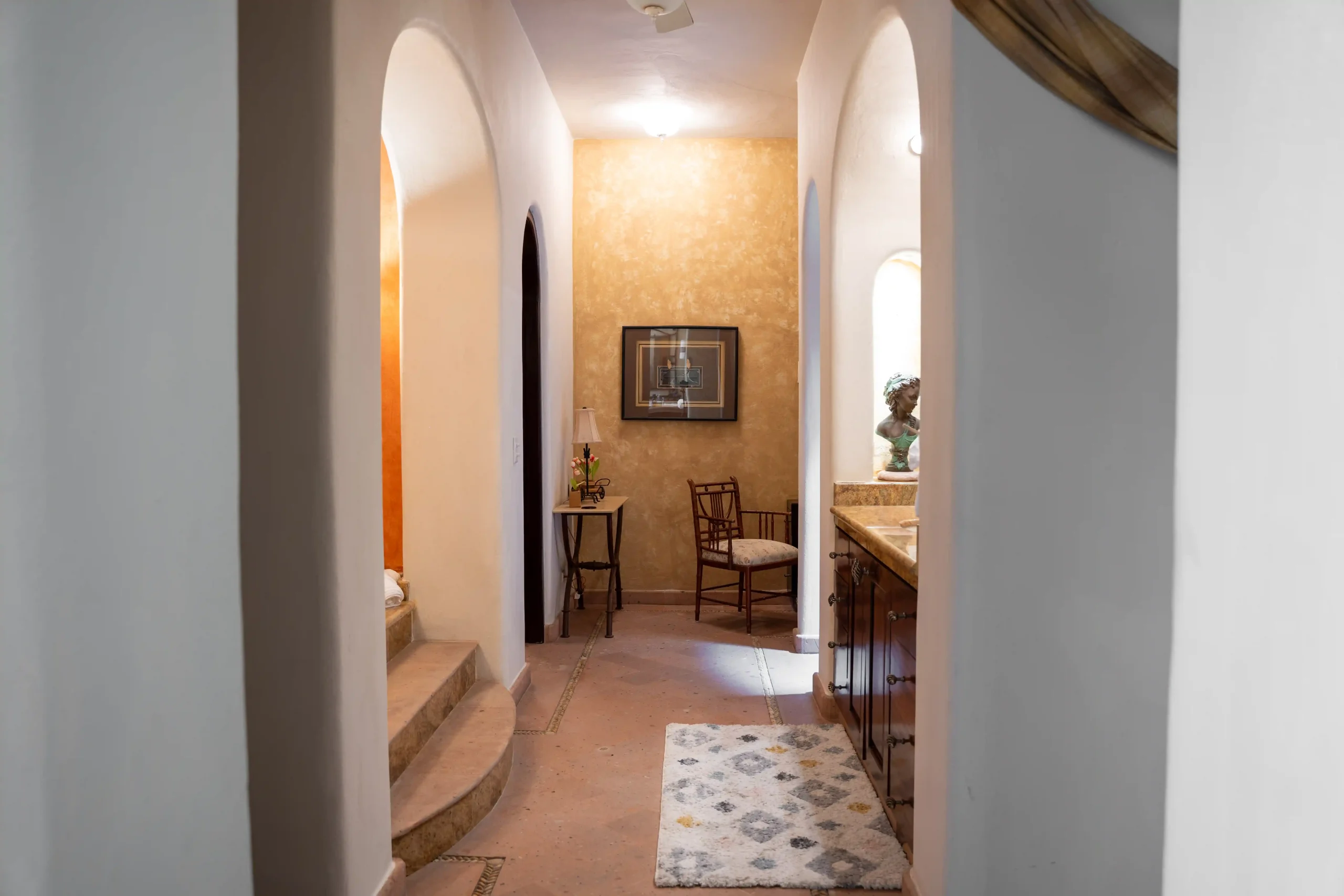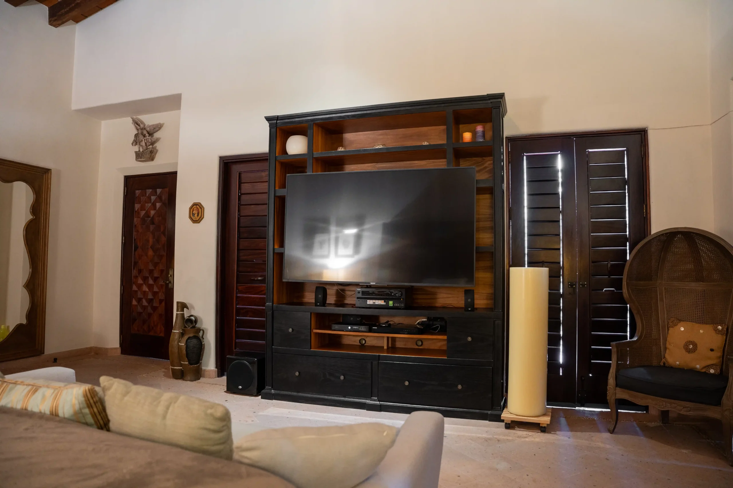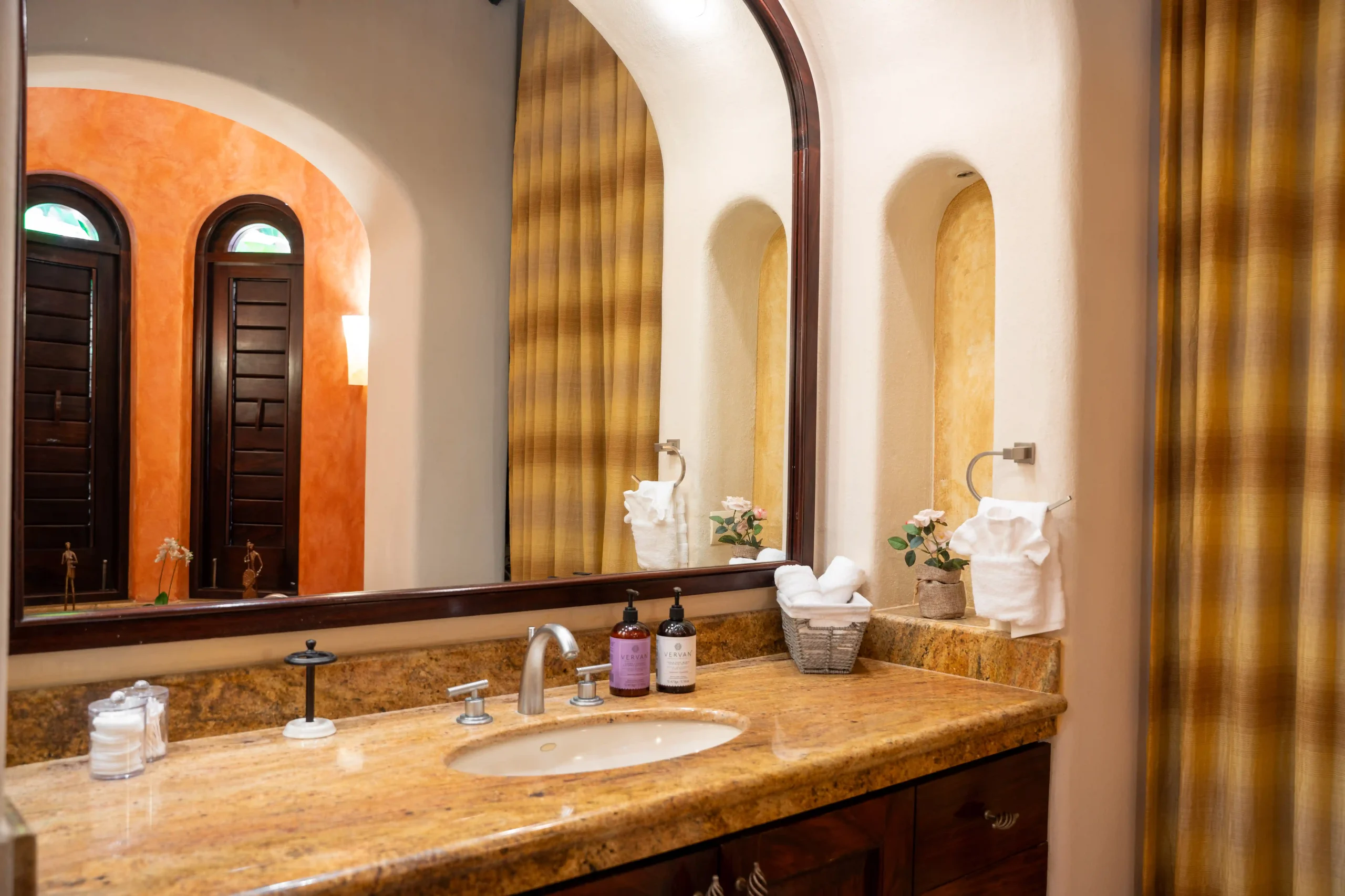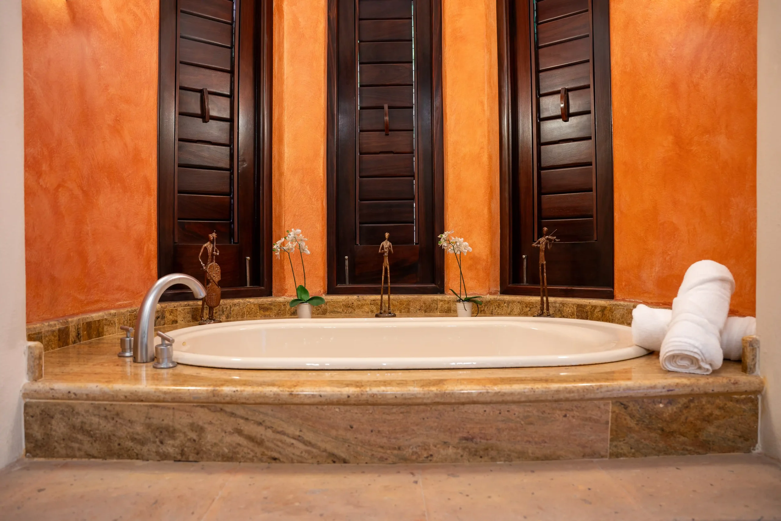 With soaring double-height ceilings and uninterrupted ocean views, the Master Suite is the crown jewel of Casa Contenta. Featuring a plush king-size bed, a private bathroom with two separate vanities for added privacy, and a luxurious soaking tub, this retreat was designed for comfort and serenity. Step onto your private balcony and let the sea become part of your stay — a perfect blend of elegance, space, and tranquility.