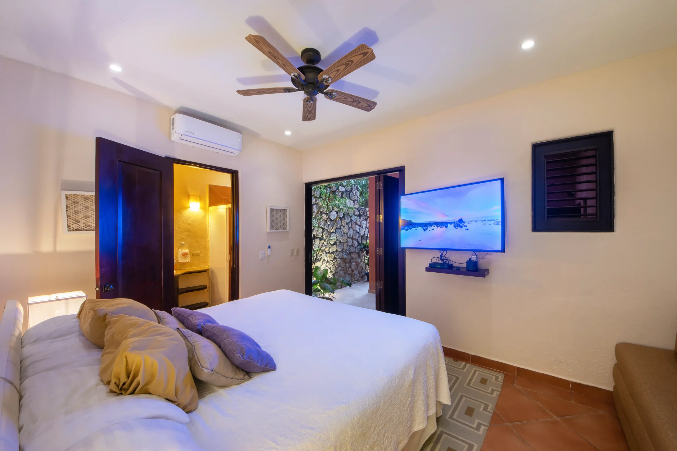 Located on the pool level, this suite blends comfort with convenience. A spacious king-size bed dressed in premium linens and a private bathroom ensure ease and relaxation. Its proximity to the pool makes it an inviting retreat, with gentle breezes enhancing the villa’s serene atmosphere.